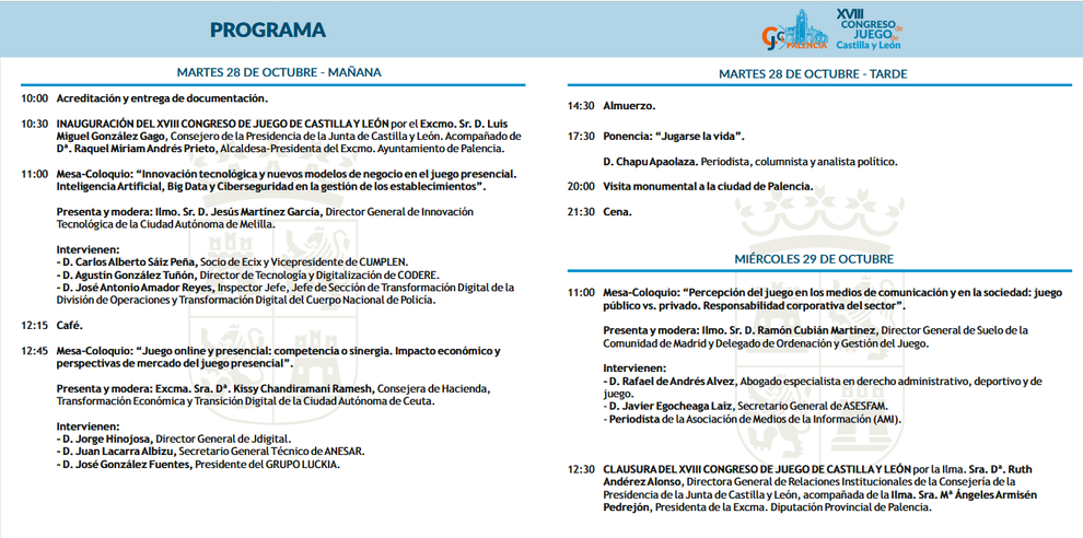 El Congreso de Juego tiene asegurada una importante presencia institucional de las Administraciones Autonómicas y del Estado, como congresistas y en las mesas-coloquio.