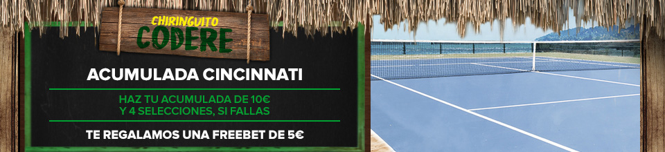 Bajo el sugerente nombre de "Chiringuito CODERE", Codere Apuestas ha reunido varias promociones especialmente diseñadas para eventos deportivos que se han celebrado estos días de verano. Incentivos a las apuestas combinadas en los torneos de la gira americana de tenis o promociones para apostar desde móvil han sido algunas de las iniciativas incluídas en esta nueva sección. https://twitter.com/codereapuestas?lang=es