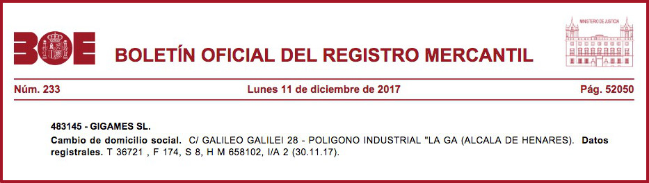 Novomatic Gaming Spain (calle Galileo Galilei, 28 en el Polígono Industrial La Garena de Alcalá de Henares. Madrid). Recordemos que