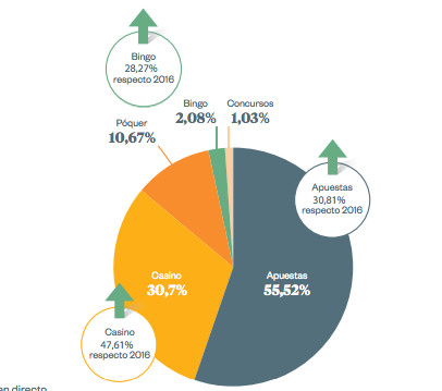 Contribución al Margen de Juego-, el crecimiento total del sector del juego online sería de un +30,9% respecto a 2016 (+560 millones de euros). Si se analizan las mayores subidas por producto,
