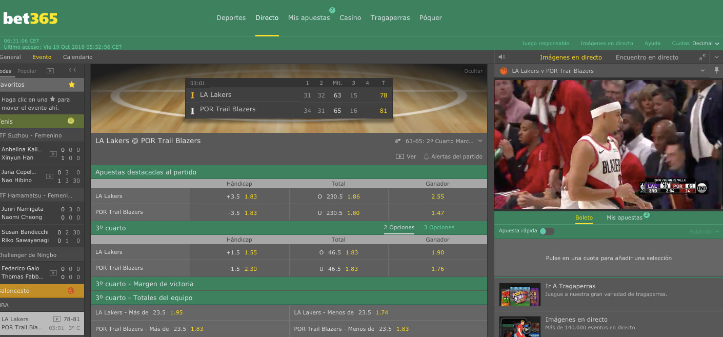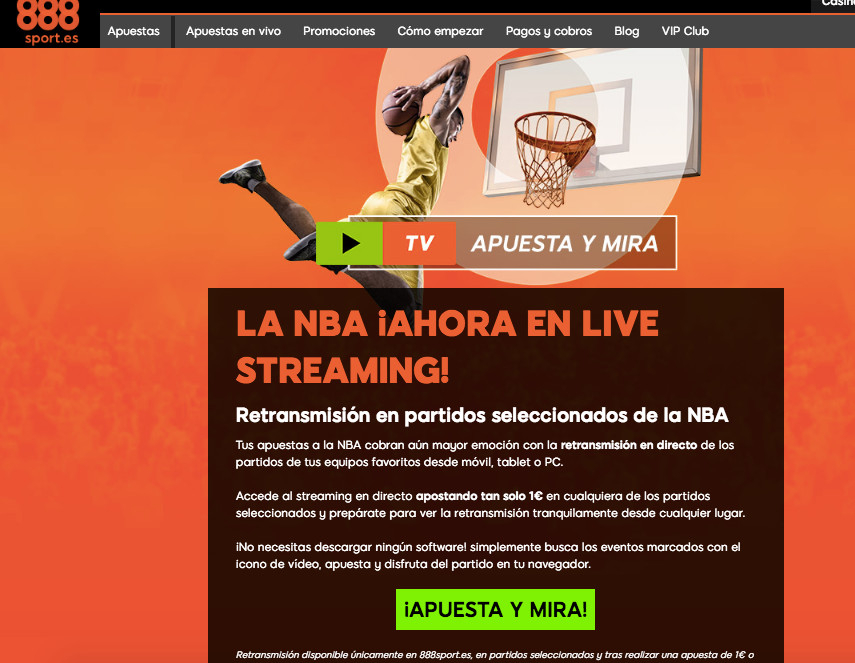 los mejores partidos de la NBA podrán verse en livestreaming a través de su propio portal de apuestas. Sin necesidad de descargar nada, solamente haciendo login identificandose como si se fuera a apostar es posible acceder a este contenido.