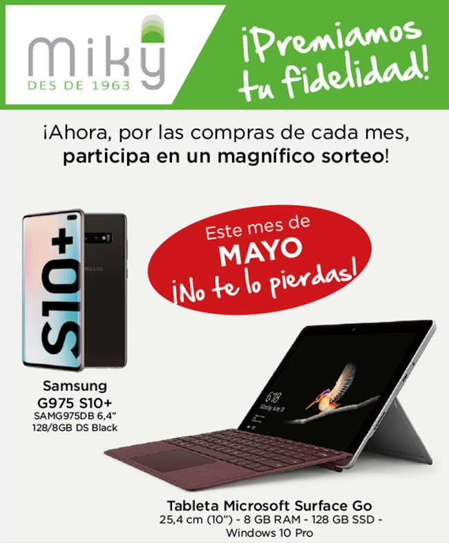 Para el mes de mayo ya se ha abierto la promoción, y todos los clientes con compras de máquinas recreativas, desde el 1 hasta el 31 de mayo, participarán en un sorteo de un Teléfono móvil Samsung G975 S10+ y una Tableta Microsoft Surface Go.
