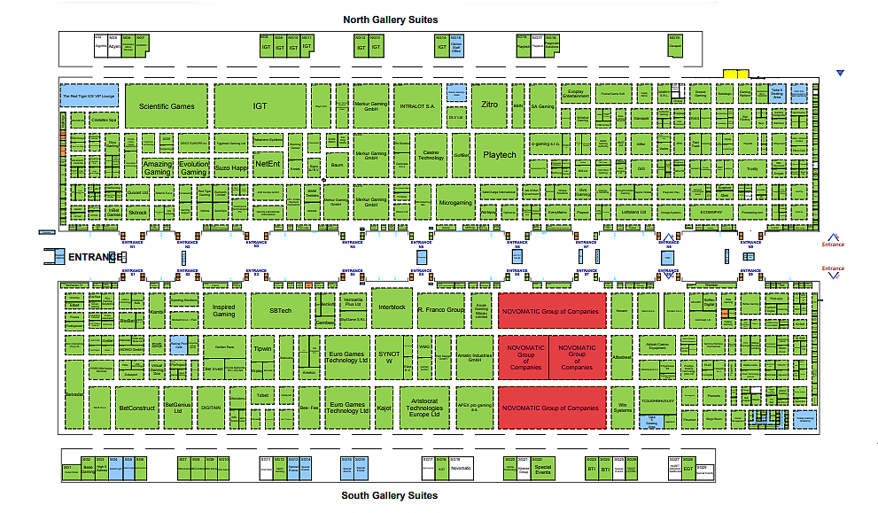 marcado en rojo el área donde Grupo NOVOMATIC instalará su impresionante stand, situado en la Galería Sur del recinto. Como se suele decir, "no tiene pérdida":