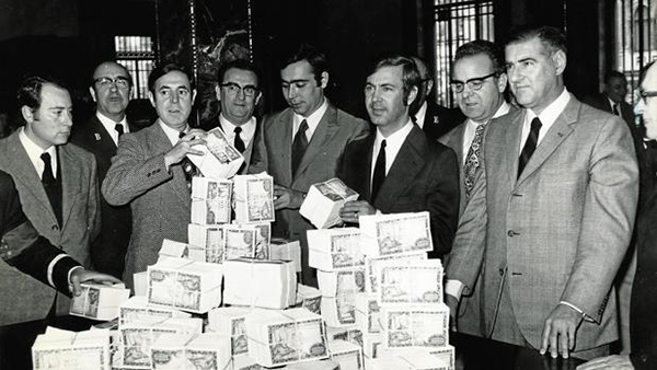 ...Si ya, en el año 72 (foto publicada en el ABC), la empresa Estatal nos daba lecciones de publicidad responsable con los tacos de billetes sobre la mesa... Claro, nosotros nacimos en el 2008. Nos llevan 40 años de ventaja en publicidad....responsable.