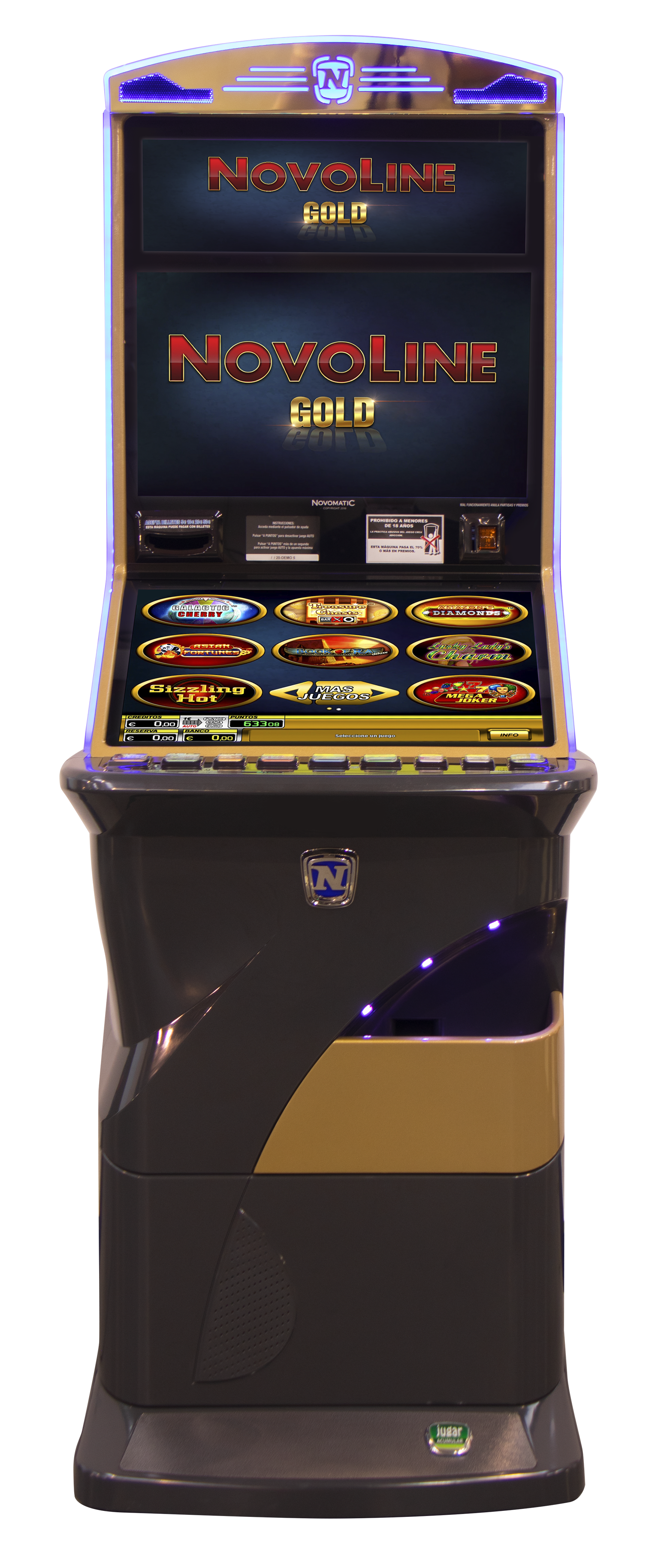 NOVOMATIC presenta para los salones de juego, este producto es la evolución natural de entretenimiento y diversión para el sector hostelero. Su librería de 16 juegos contiene algunos clásicos como Book of Ra o SIzzling Hot, sin renunciar a cinco títulos nuevos que, por primera vez, se incluyen en una máquina de hostelería: Amazon´s Diamonds, Asian Fortunes, Galactic Cherry, Fruit Sensation y Treasure Chests. Además nos la trae en dos de los muebles más atractivos del mercado: Winner Premium y Minimat.