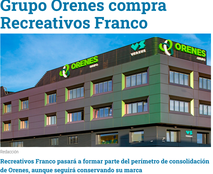 La prensa generalista se ha hecho eco del reciente anuncio de fusión de Grupo Orenes y R. Franco con el propósito de impulsar el crecimiento hacia nuevos mercados, así como también su consolidación en el sector del entretenimiento y en el desarrollo tecnológico.
