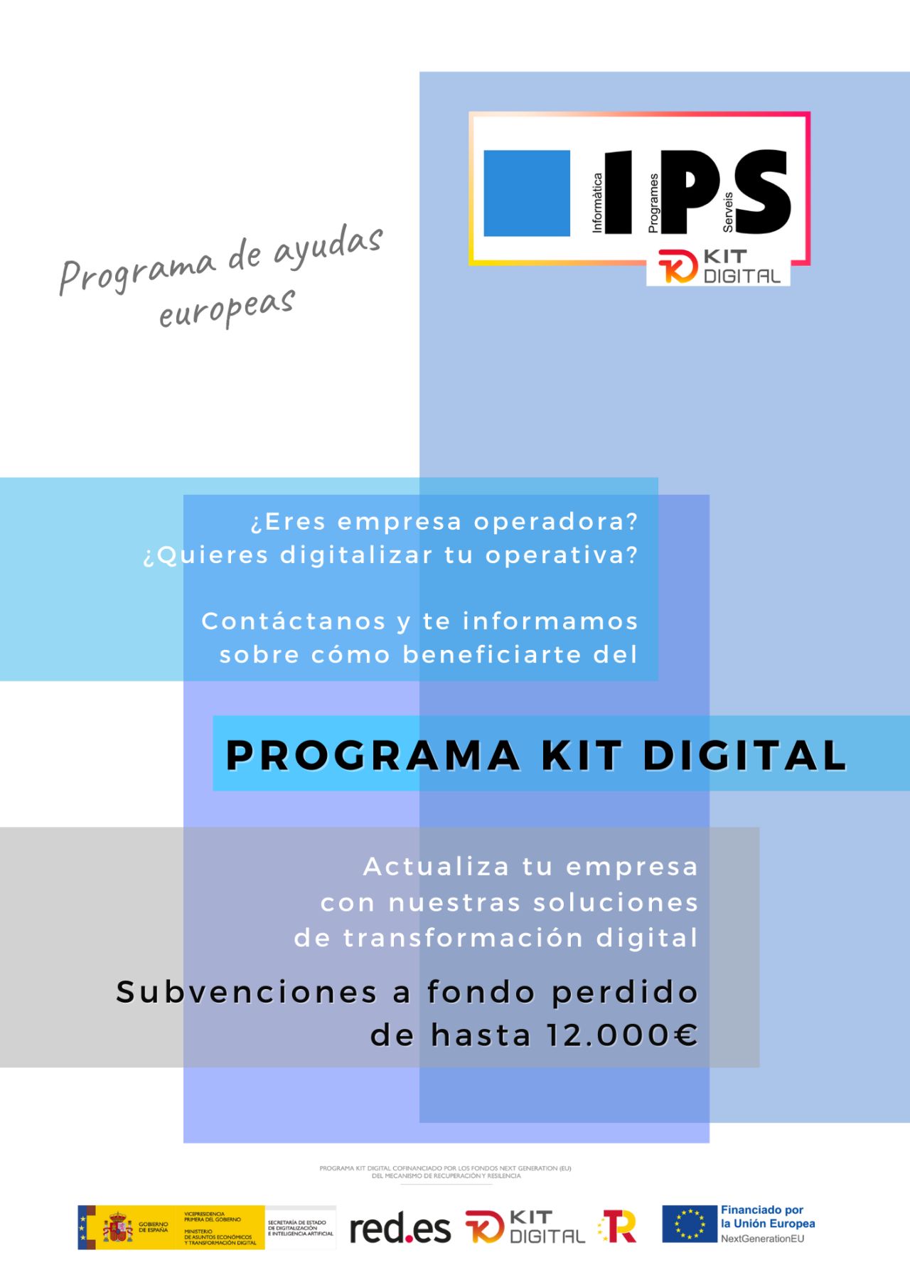 IPS, empresa acreditada como Agente Digitalizador, asegura que todas sus soluciones son accesibles mediante el bono Kit Digital, subvenciones a fondo perdido cofinanciadas por los Fondos Next Generation (EU) del Mecanismo de Recuperación y Resiliencia.