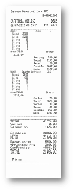 Se imprime un único ticket para la Empresa Operadora. Podemos imprimirlo las veces que necesitemos, si queremos entregar una copia para el establecimiento, por ejemplo.