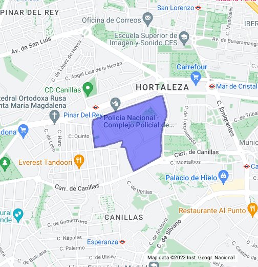 El actual Complejo Policial de Canillas fue en un principio un lugar de esparcimiento de las élites madrileñas conocido como Quinta del Quinto. Al terminar la Guerra Civil, se instauró la Academia Especial de la Policía Armada. Y, en 1979 es cuando este cuerpo de seguridad pasa a denominarse Policía Nacional.