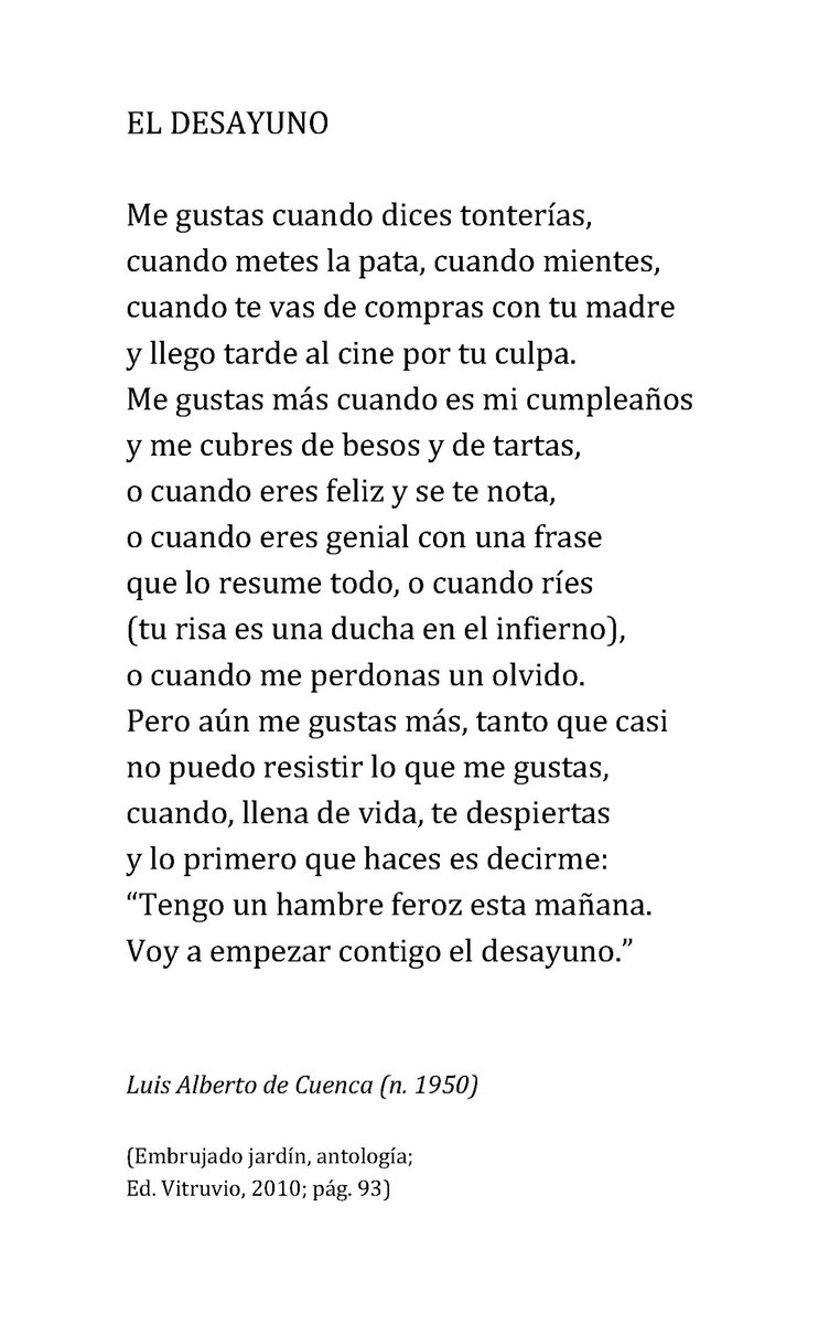 Pero, permítannos que hoy, tan orgullosos como estamos de que el miembro de nuestro JURADO haya sido ayer galardonado con el PREMIO Reina Sofía de Poesía Iberoamericana, les ofrezcamos algunos de sus escritos más conocidos. Lean lo que puedan de Luis Alberto de Cuenca porque es imposible no sentirse atrapado por lo que cuenta y cómo. Aquí van algunas maravillas...