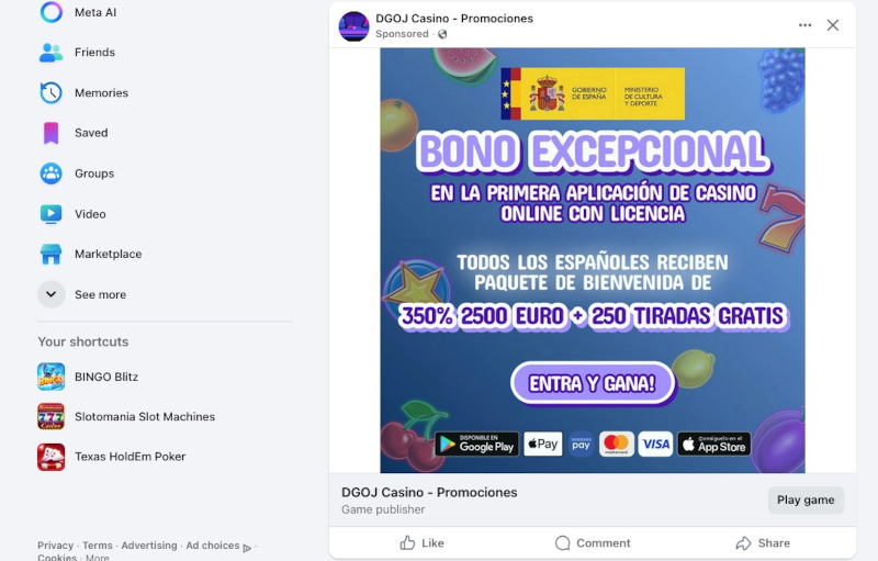 Este doblel caso es especialmente grave porque no se trata de operadores que pasen desapercibidos. Están invirtiendo en publicidad pagada, con anuncios visibles para cualquier usuario español que haya mostrado interés por el juego online. Facebook, como plataforma, no distingue entre operadores con licencia y operadores ilegales si nadie se lo indica. Y parece que, en este caso, nadie lo ha hecho.