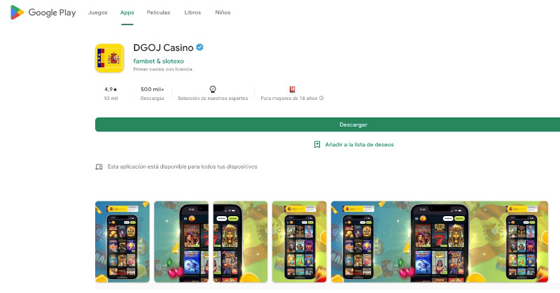 Ya en la página de la App, podemos leer una descripción en la que se afirma explícitamente que DGOJ Casino es el primer casino con licencia y gestionado directamente por la Dirección General de Ordenación del Juego, señalando que se trata del "único casino 100% legal y respaldado por el gobierno español".