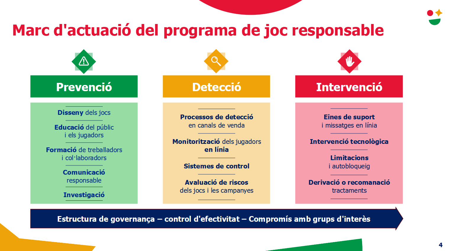 El programa de juego responsable de Loteries de Catalunya se estructura en tres grandes ámbitos de actuación: